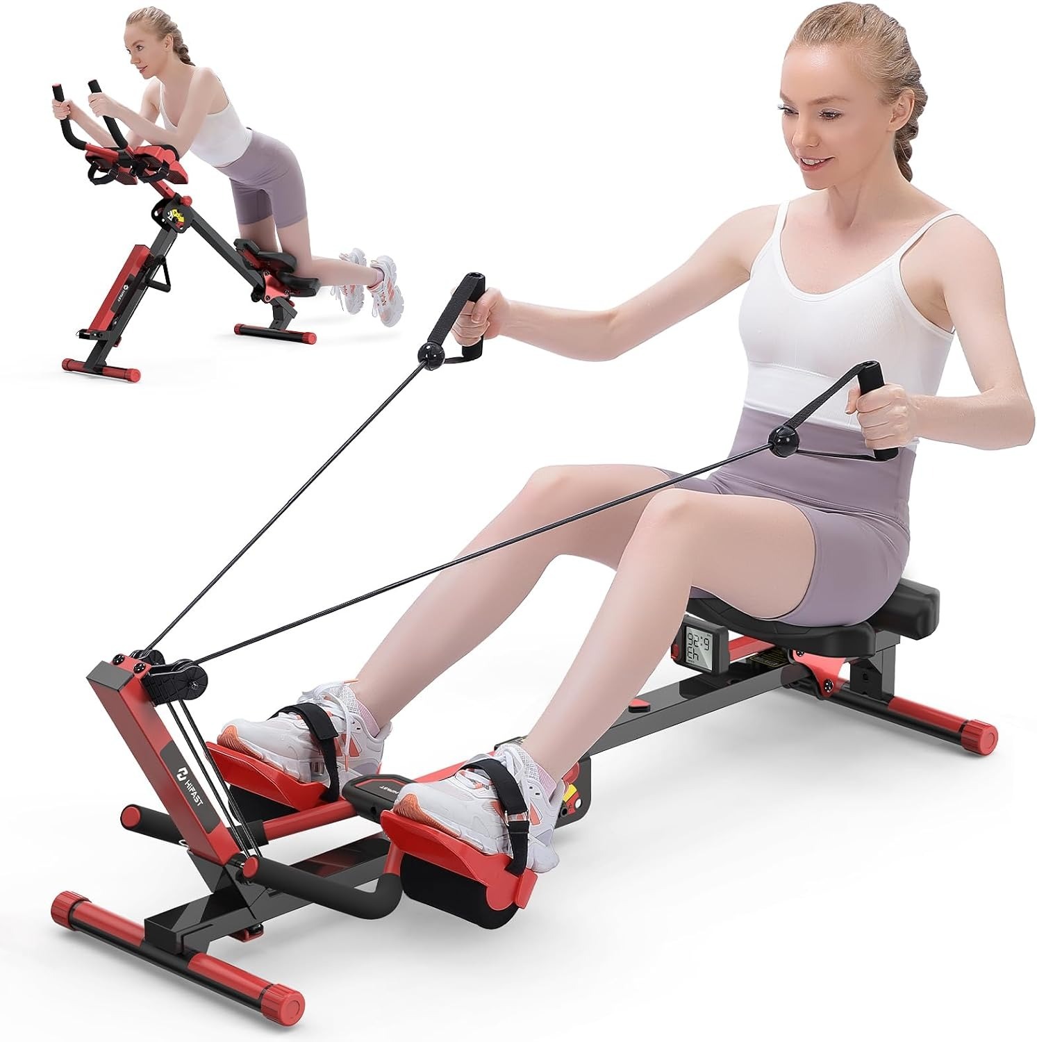 Compact home rowing machine.Full-body, low-impact workout.