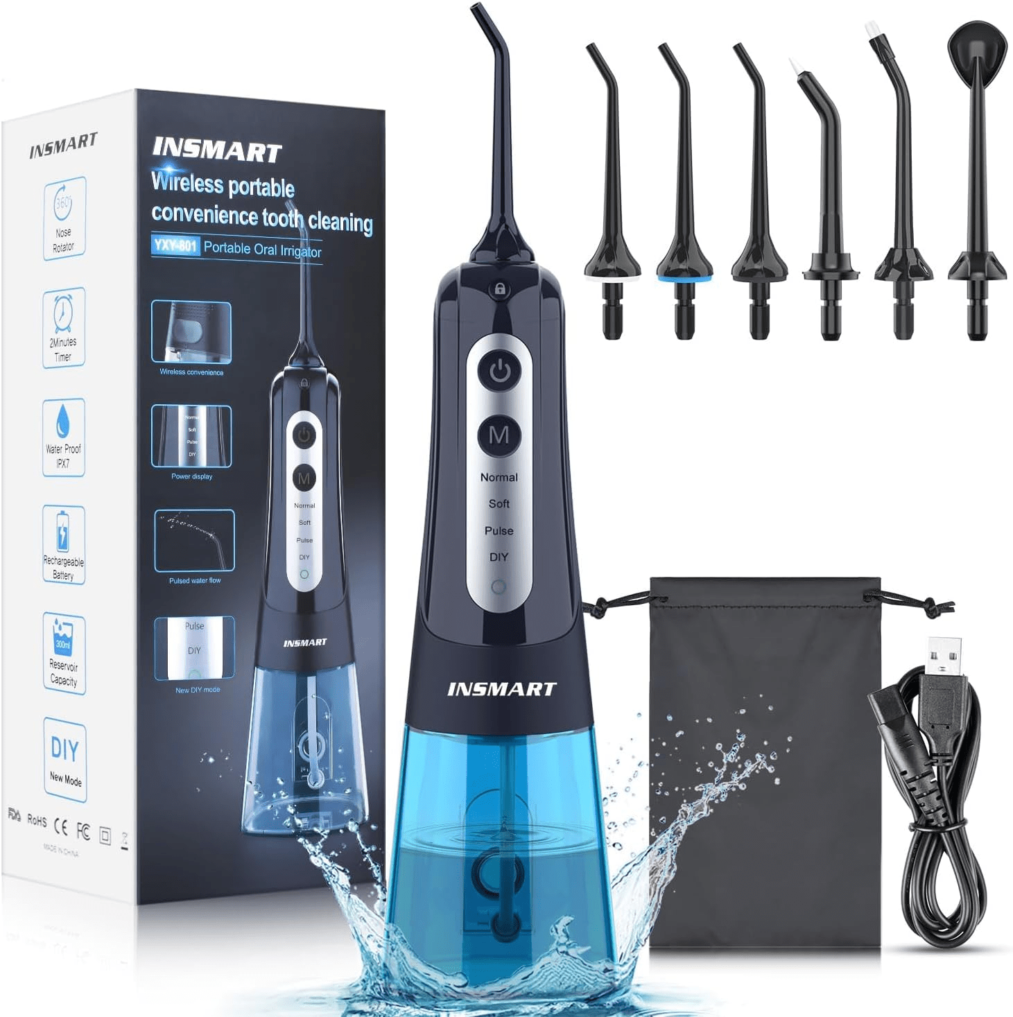 The Professional Dental Flosser features advanced 0.3mm+0.3mm double-thread water pulse technology, delivering 1400-1800 pulses per minute for superior plaque removal, improved gum health, and fresh breath.